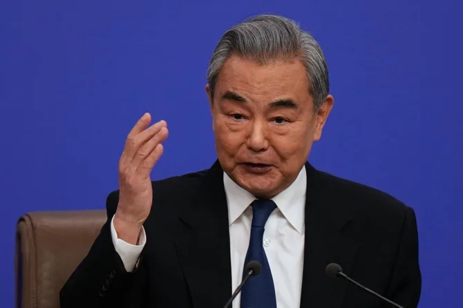 Chinese Foreign Minister Wang Yi speaks during a press conference on the sideline of the National People’s Congress (NPC)